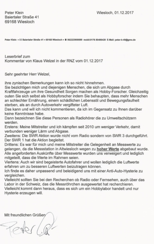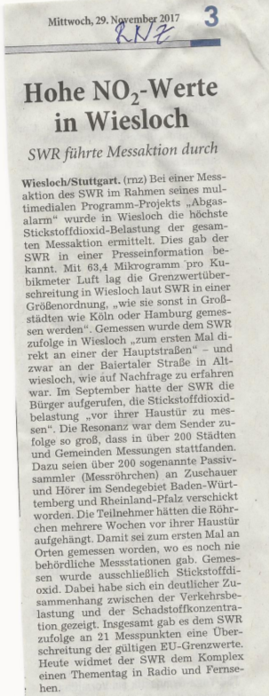 Altwiesloch hat eine NO2 Belastung, dagegen können selbst Großstädte nicht gegen anstinken ....