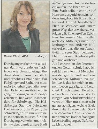 Wir danken all unseren Wählern aus der gesamten Stadt, vor allem den Altwieslochern, die uns über 5000 Stimmen bescherten (ca 40%!), und den Baiertalern, die mit weit über 1000 Stimmen uns ihr Vertrauen ausgesprochen haben.